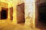 The other recent excavation work is to the south of the causeway35 that revealed tombs that were originally excavated by Reisner, but subsequently36 covered with sand. Four of the tombs were re-excavated, and the hieroglyphic inscriptions over the doorways were restored. It was a peaceful site, the silence punctuated37 only by the clattering38 in the distance of workmen building the stage that will host the millennium celebration -- but more on that later.